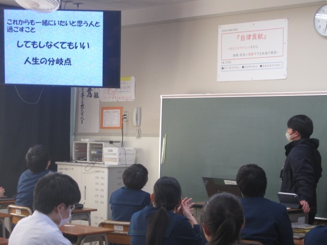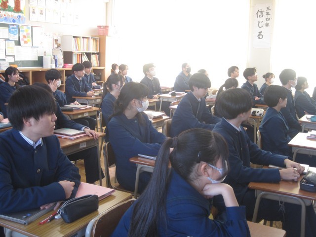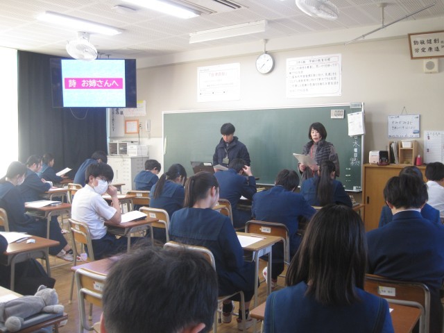 午後、3年生は人権学習を行いました。「お姉さんへ」という詩を用い、結婚差別問題を考えました。