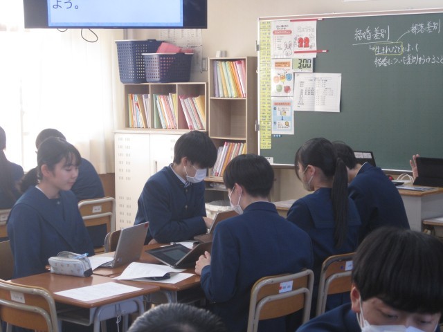 3年生は引き続き結婚差別問題を学習しました。2次目は、どのようにして結婚差別を乗り越えたかを考えました。
