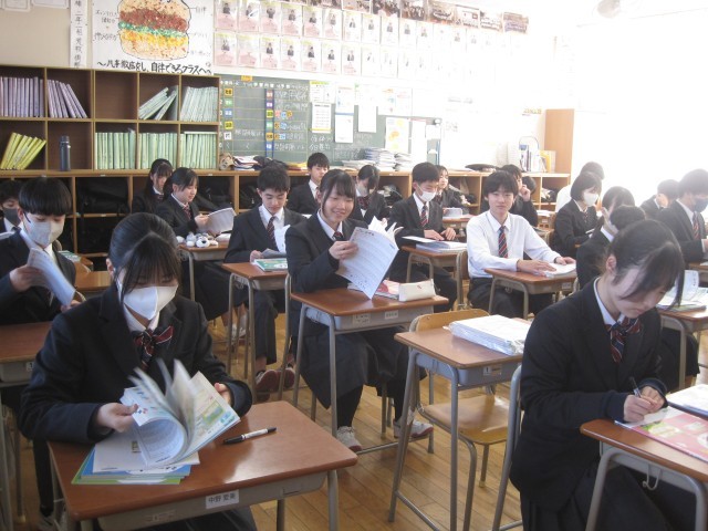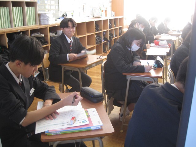 2年生は、2学期に行った三者面談で確認した問題集が配られました。さっそく問題を解き始めている人も!!