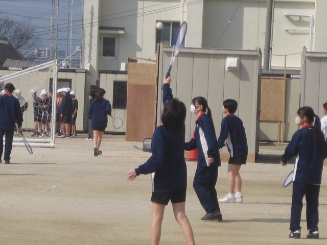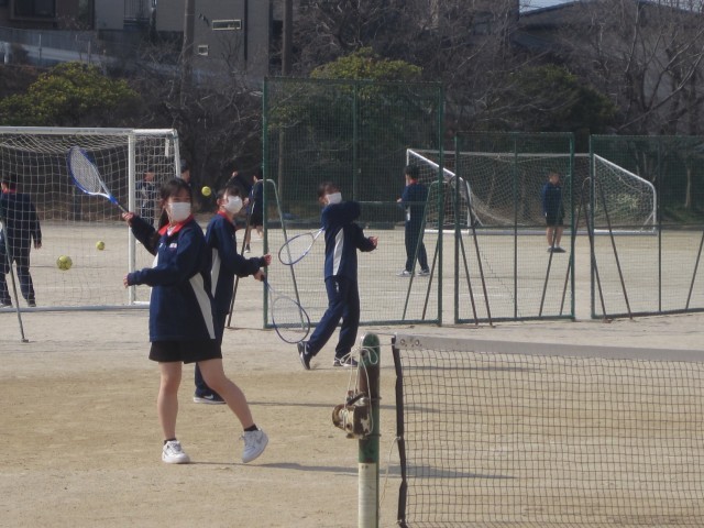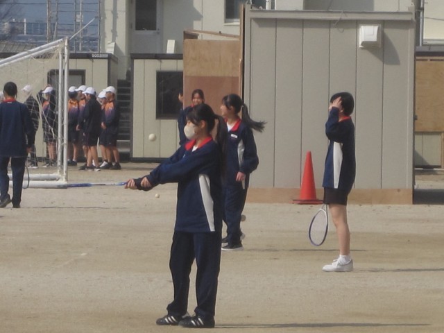 3年3,4組の女子の保健体育は、ソフトテニスでした。グラウンドに出る先生からの指示をまだかまだかと待っており、指示があると嬉しそうにテニスコートへ!楽しそうにソフトテニスを行っていました!