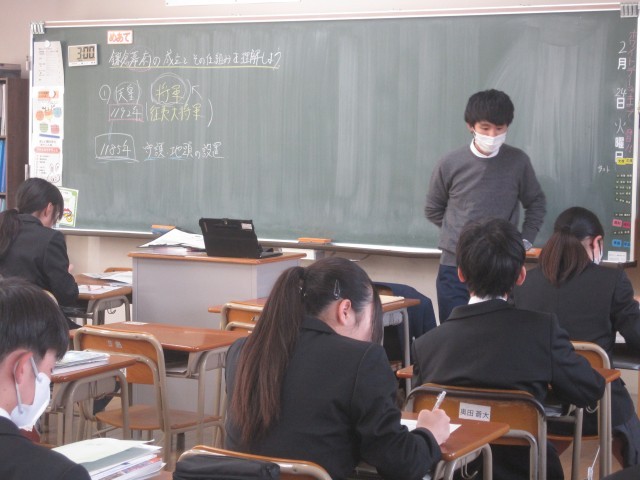 1年4組の社会の授業では、鎌倉幕府について学習しました。岡山先生の説明を聞き逃さないように、集中していました!