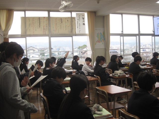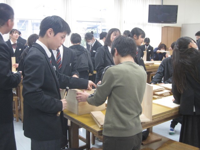 本日、来年度入学予定の大城小学校6年生の皆さんが、本校に来校してくれました!まず5校時の授業の前半に中学1,2年生と一緒に参加しました。数学の確率の問題では箱の中から赤いボールを取り出したり、技術の授業では板を抑えたりしました。