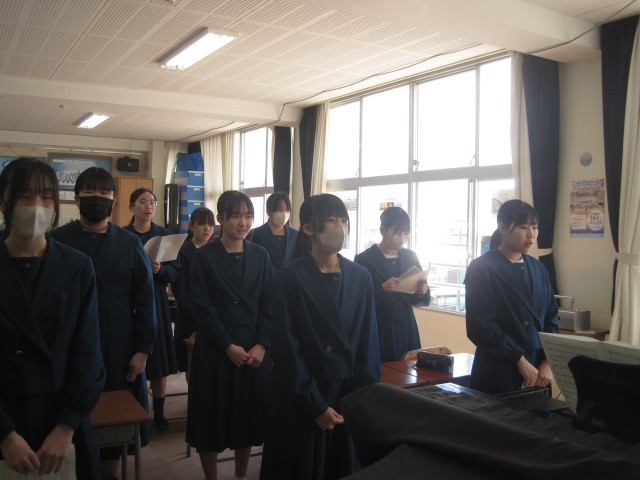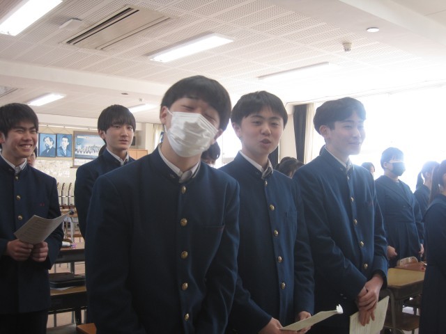 3年7組の音楽の授業では、卒業式歌の「群青」の練習が行われていました。練習を重ねるたびにきれいになっています。平田先生から「出だしはもっと…」と熱の入った指導が!卒業式当日、ご来賓の方々、保護者の方々そして在校生代表の生徒会総務や先生たちを感動させる歌声に期待が高まります!!