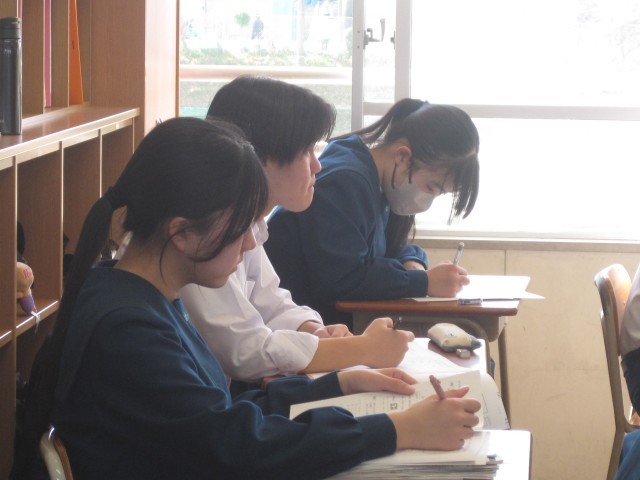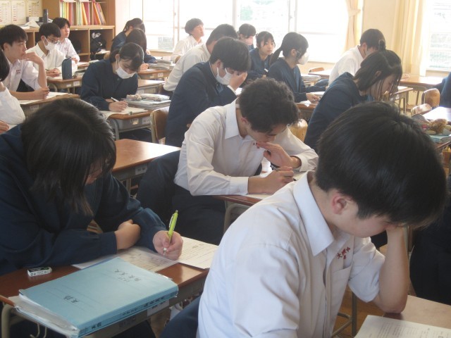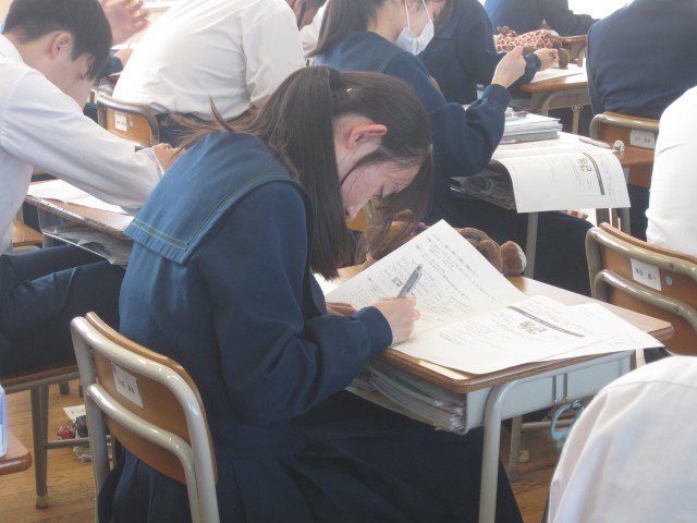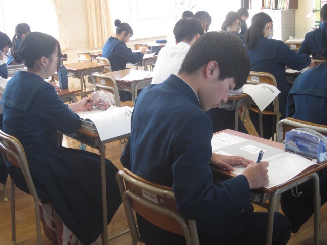 3年5組の英語の授業ではリスニングテストが行われました。静かにそして集中してテストを行いました!