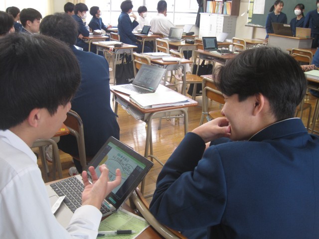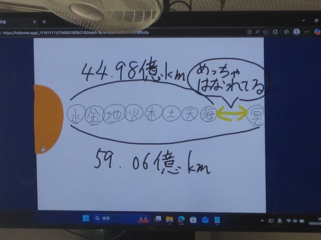 3年5組の理科の授業では、天体について調べたことをグループごとに発表しました。タブレット画面を共有し、画面を見ながら発表を聞きました。