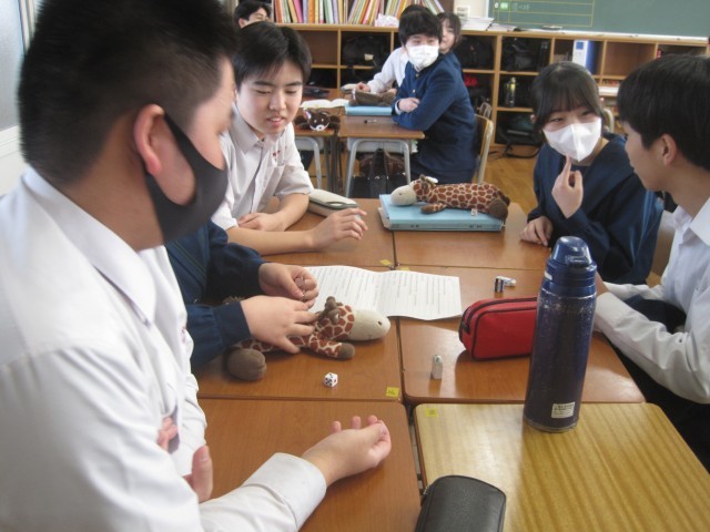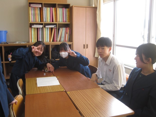 3月5日(木)、3年5組の英語の授業では、楽しそうな笑い声が響きました。英語すごろくを班で行っていました。とても楽しそうです!