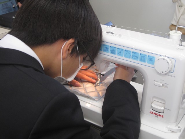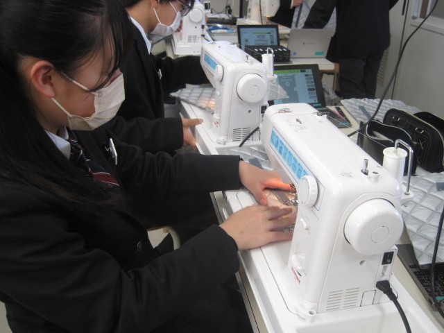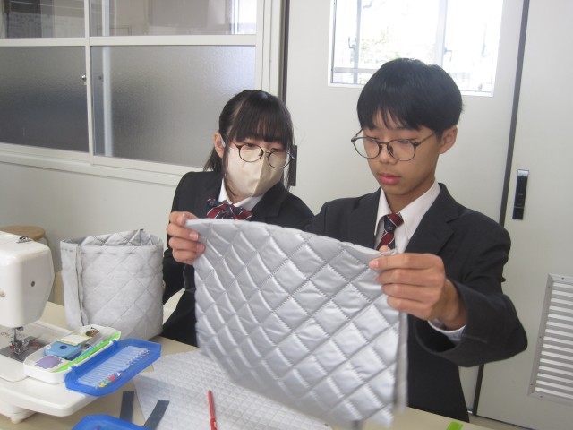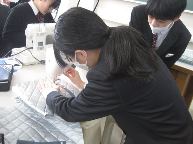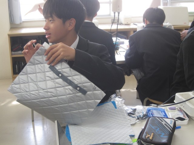 1年6組の家庭科の授業では、エコバッグを作成中でした。保冷バッグなので、きっといろいろなところで活躍することでしょう!