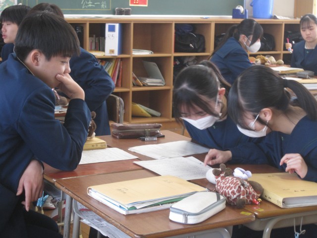 3年5組の社会の授業では、仕上げたレポートをグループで発表し合いました。3年生の各教科の授業もあと数日です。しっかり仕上げを行いましょう!
