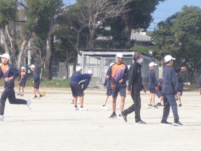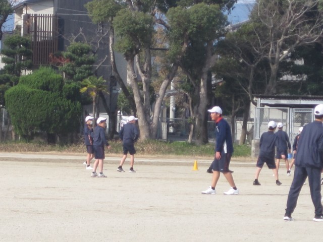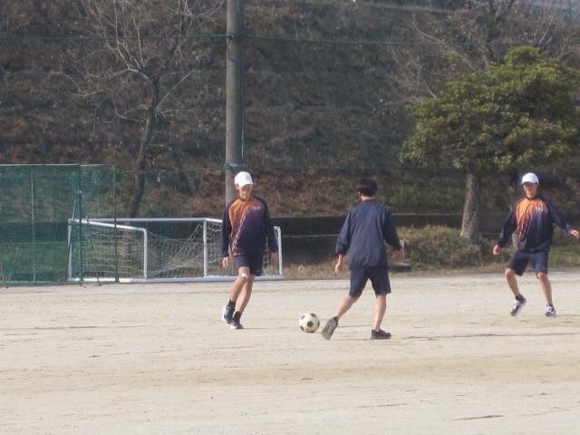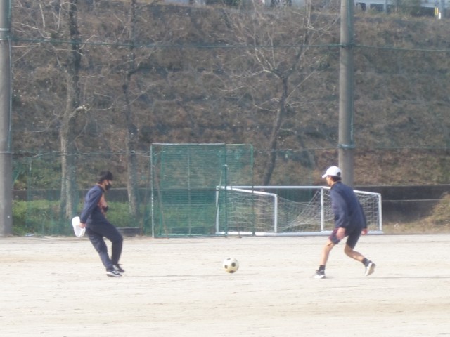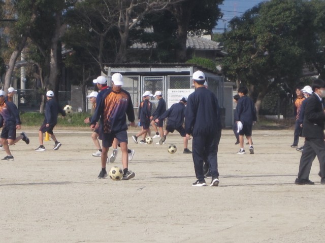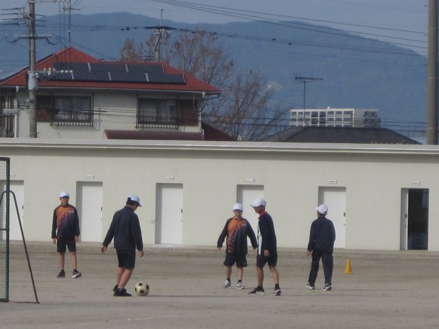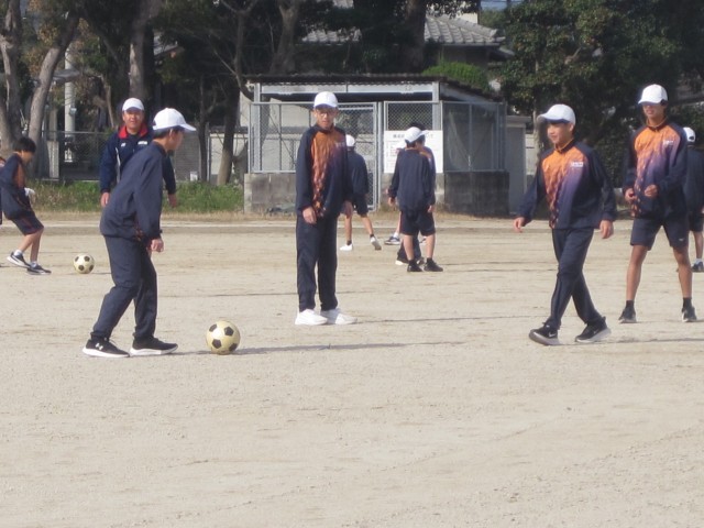 1年5,6組の男子の保健体育の授業では、サッカーを行いました。授業の後半に行うゲームに向けて練習に励みました。