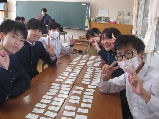 3年2組の国語の授業では百人一首を行いました。札をたくさんとることができましたか?