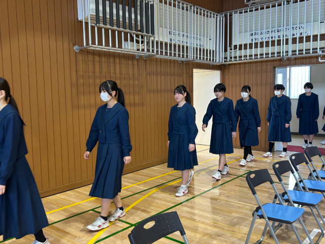 体育館の改修工事が先日まで行われていたため、体育館で卒業式の流れを通すのは初めてになります。