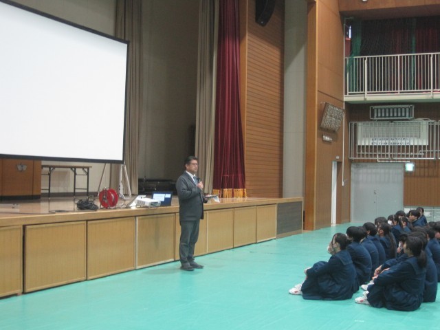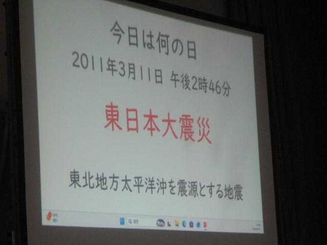 本日、今年度最後の「にんげん学」を行いました。まず副校長先生より15年前の3月11日に東日本大震災が起こったこと、当たり前と思うことが実は当たり前ではないことなどの話があり、14時46分に東日本大震災で犠牲になった方に哀悼の意を込めて黙禱を行いました。そして、「にんげん学」では、本市で行っている被災地派遣事業に中学生の頃に参加した藤先生の話でした。本日は、ニュースなどでも東日本大震災のことが取り上げられます。風化させないことが大切です!