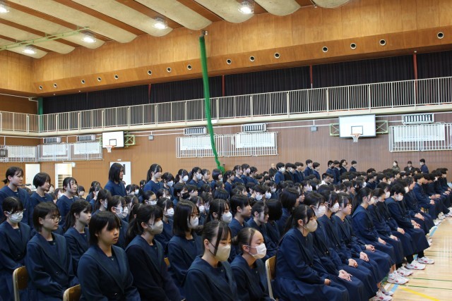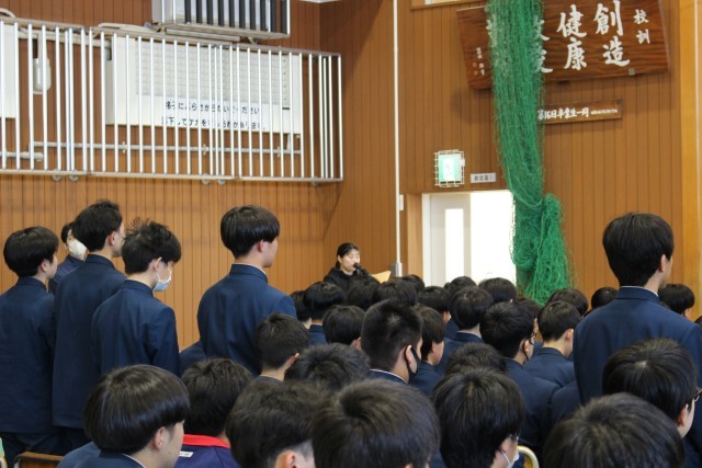 今日、体育館では3年生が卒業式の練習をしていました(写真)。15年前の卒業生が味わった「日常が断絶する恐怖」を思うとき、今、目の前に友達がいること、友だちや家族と一緒に食事ができること、いろいろな人とたわいもない話ができること、様々なことにチャレンジできることなどが、いかに奇跡的なことかに気づかされます。