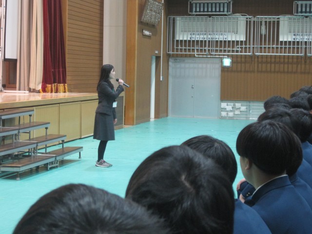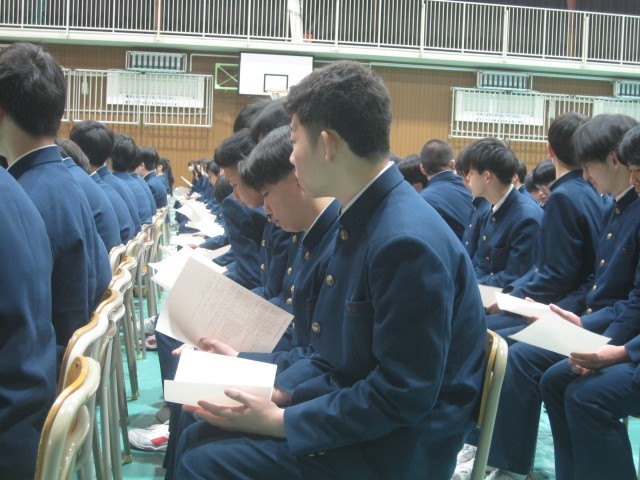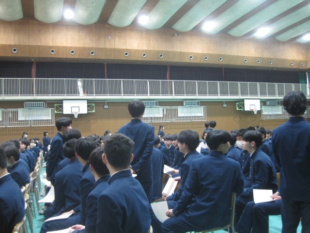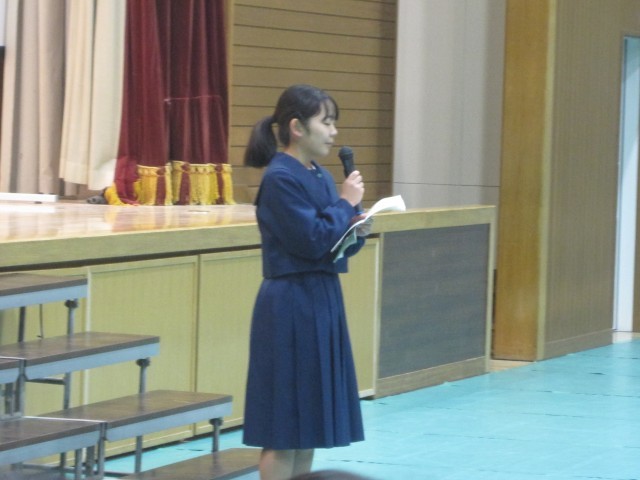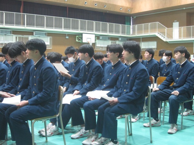 同窓会入会式が行われ、本校の卒業生でもある中岡先生(現在:大野中学校勤務)に話をしていただきました。久しぶりに中岡先生に会い、3年生も嬉しそうでした!