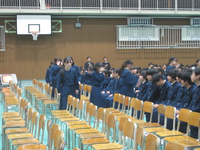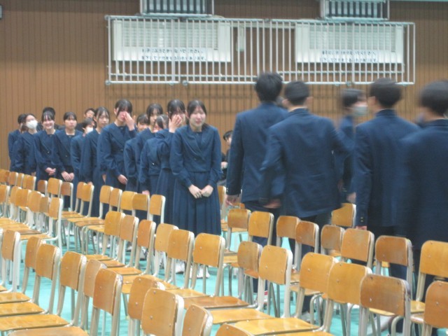 退場時に泣いている3年生が何人もいました。リハーサルで泣くのは、なかなかないことです。すばらしい!明日の本番がますます楽しみです。午後は準備です。在校生の皆さん、心のこもった準備をお願いしますね。