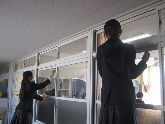 1年生も隅々まで丁寧に大掃除に励みました!掲示物を丁寧にはがしたり、ドアのサッシを丁寧に掃除したりしました!