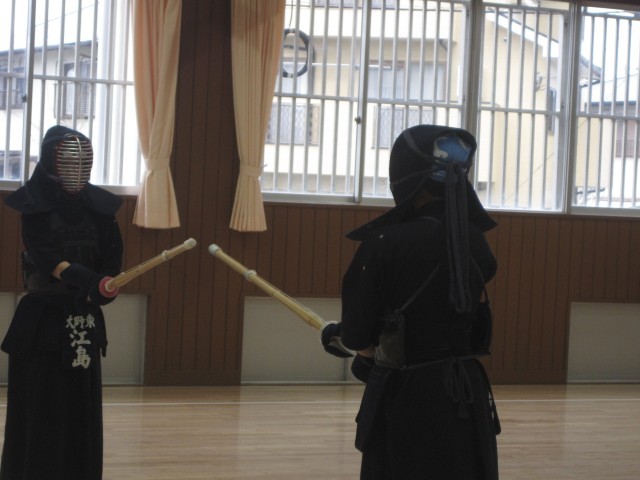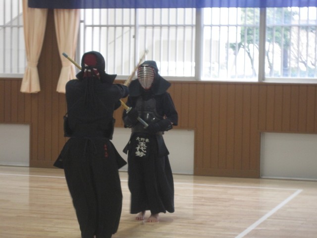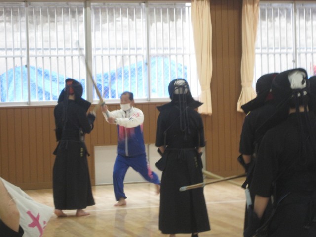 剣道部も練習に励んでいます。コーチから声を出すことの大切さについて話がありました。