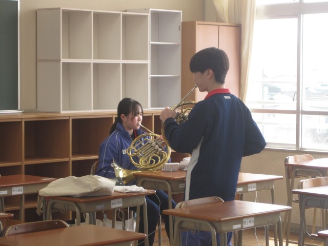 吹奏楽部はそれぞれの教室でパート練習を行いました。いよいよ明日、令和8年度赴任式・始業式を行います。皆さんの登校を楽しみに待っています!