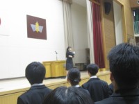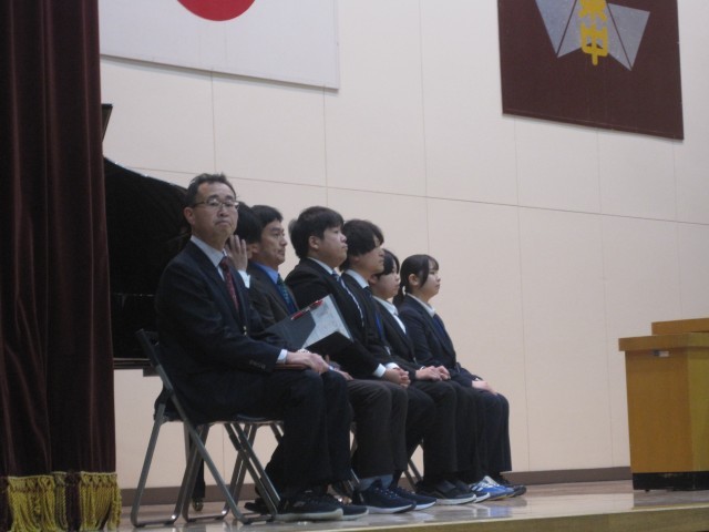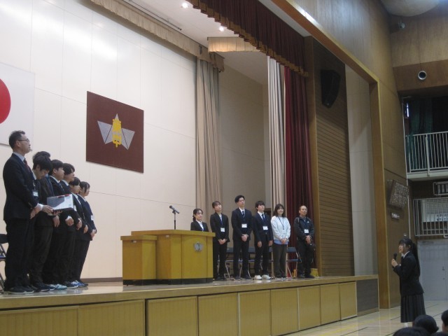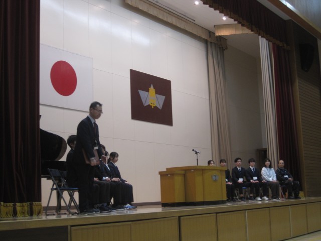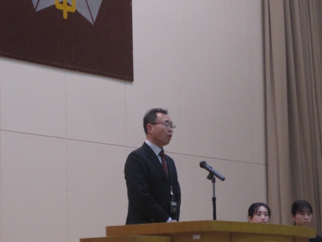4月7日(火)、令和8年度赴任式を行いました。今年度は15名もの先生をお迎えすることになり、お一人お一人言葉をいただきたかったのですが、時間の都合上、副校長の古賀英利先生が代表あいさつを行いました。