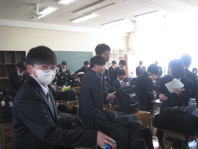 新2年生はプリント配付等が行われ、新クラス発表が10時からとなりました。「まだか、まだか」とそわそわして待っていました。