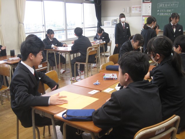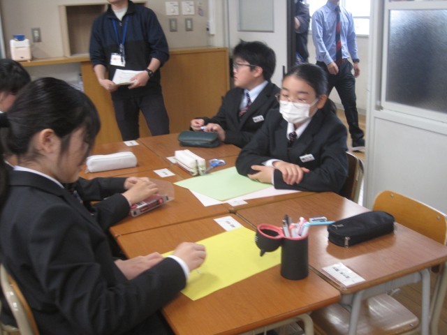 1年生自己紹介カード作成、学級目標作成②