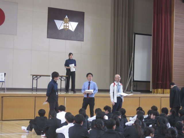 避難訓練を実施しました。雨天のため、1年生のみ体育館に避難することになりました。ハンカチで手を抑えながら廊下・階段を走らない1年生。さすがです!!あってほしくないことですが、「もしも」の時のために特別教室も含め避難経路を確認しておきましょう。