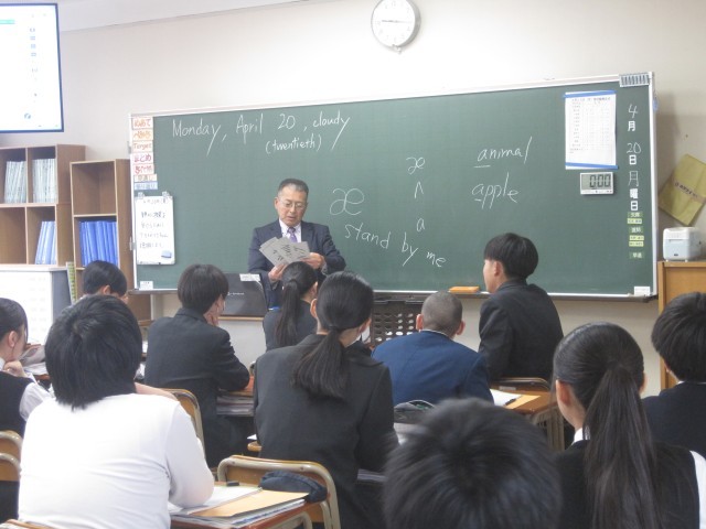 3年2組、3年6組は英語の授業が行われました。2組では弥永先生が提示するフラッシュカードを発音する元気な声が響き渡りました。6組では菊池先生がデジタル教科書を提示し、英文を聞きました。
