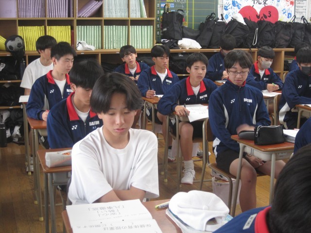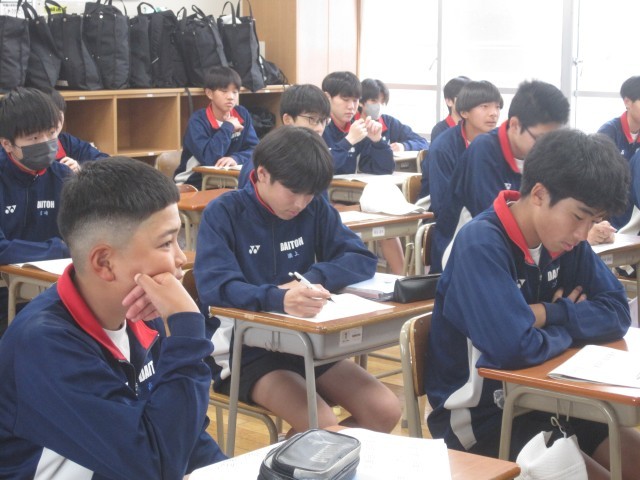 3年3,4組の保健体育(保健)の授業は今年度赴任した髙木先生の初授業でした。テンポよく進められ、生徒さんの表情もとてもいい!挙手による発表を頑張っていました。