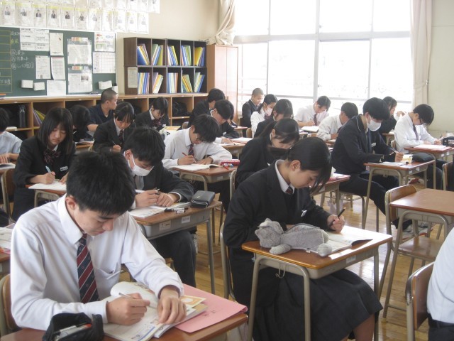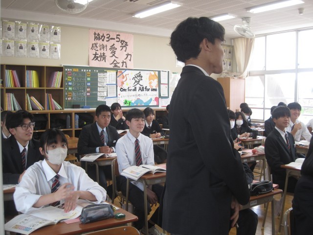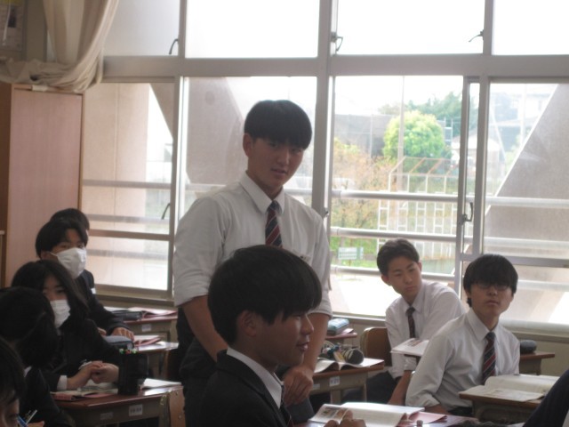 3年生は道徳の授業でした。本日はローテーション授業でした。「周囲から協力してもらった経験は?」と佐藤先生の問いに発表する生徒さん。そのような温かい輪を広げましょう!