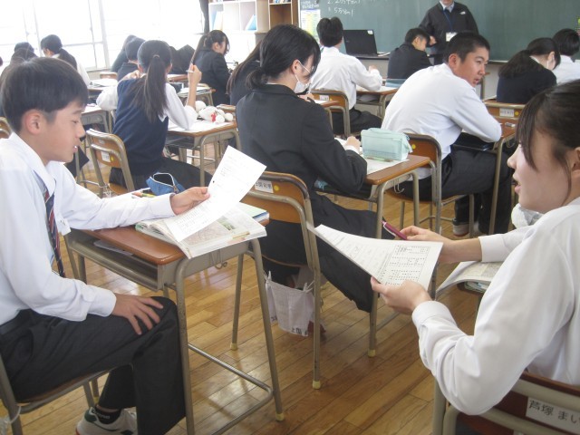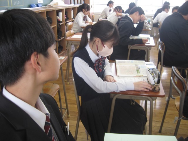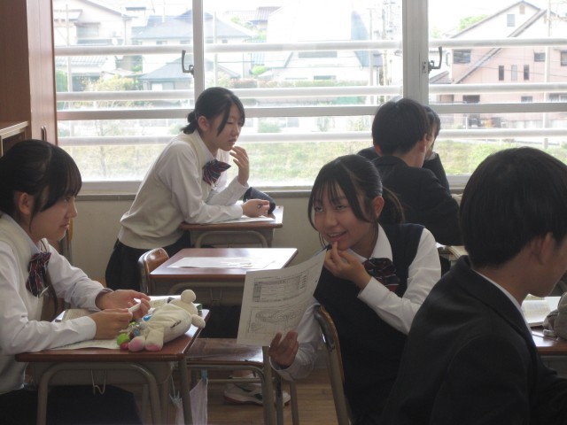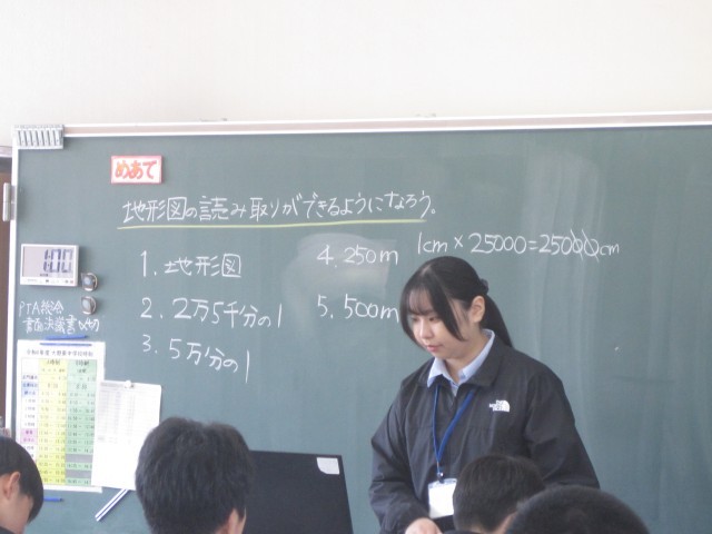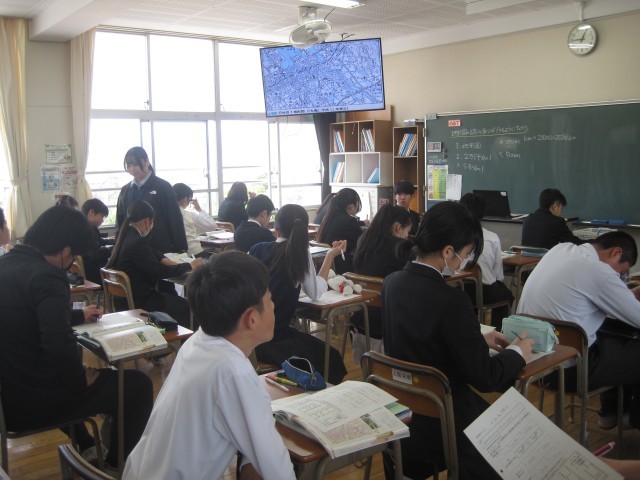 2年2組の社会の授業では、今年度赴任した吉永先生の授業が行われました。地形図の読み取り方を学習しました。小集団で正解しているか確認しました。きちんと読み取れるようになったでしょうか!