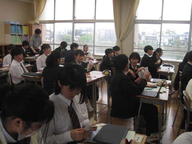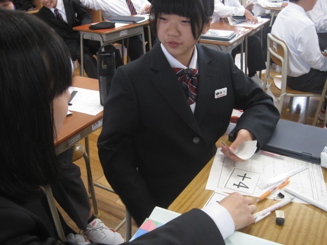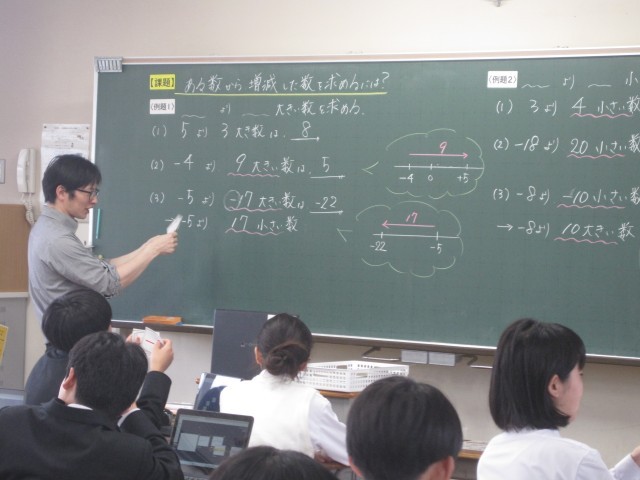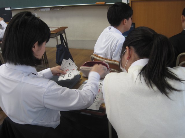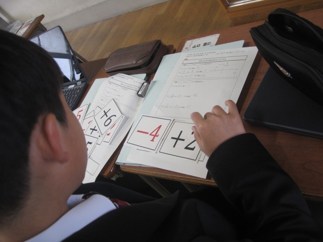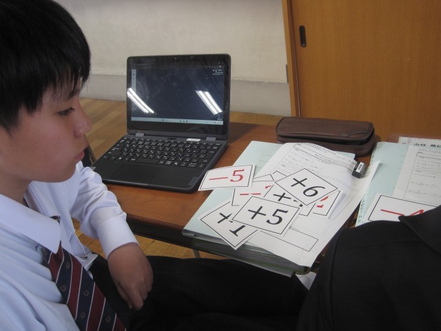 1年5組の数学の授業では、カードで正の数、負の数を学習しました。ゲーム形式でとても面白そうでした!