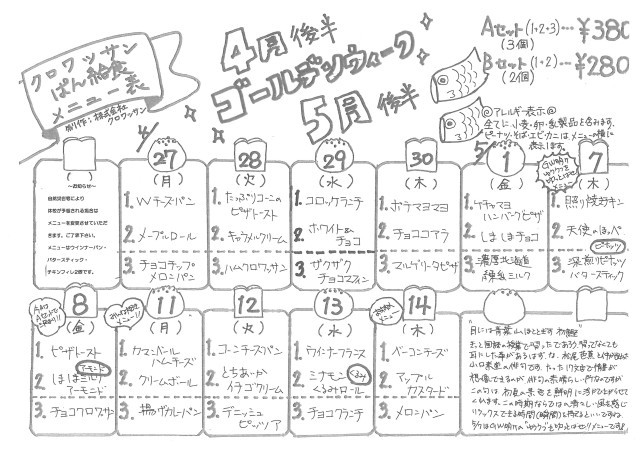 4月27日(月)~5月14日(木)パンメニュー🍞