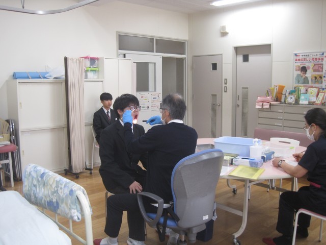 2年生は朝から歯科検診を行いました。歯科医の先生から「きれいだね」と歯磨きを褒められる生徒さんもいました!