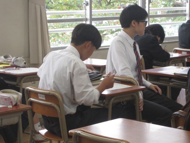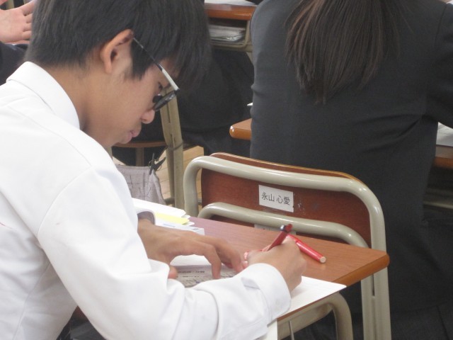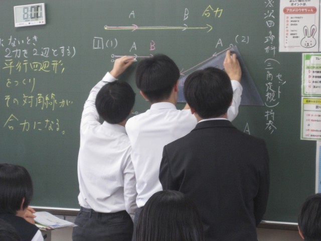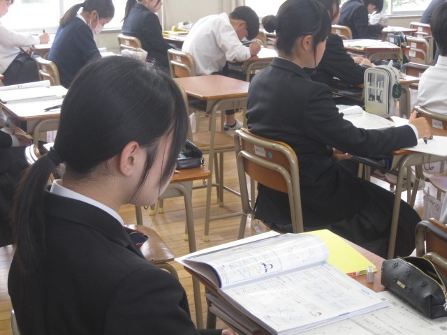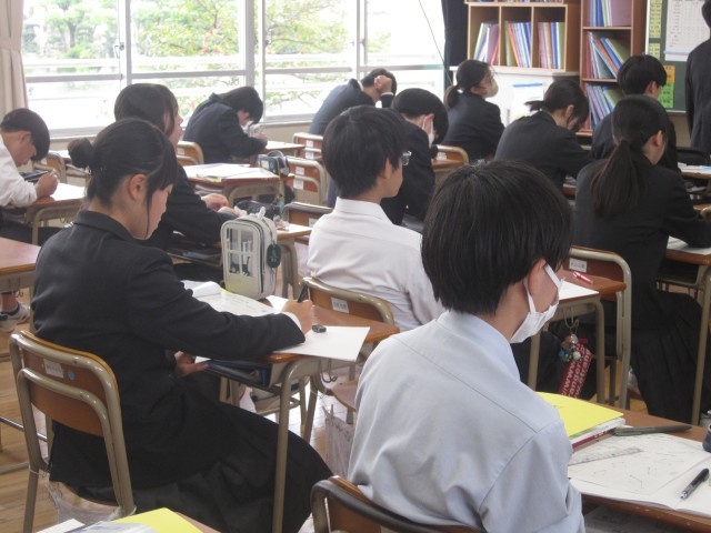 3年2組の理科の授業では、生徒4名が作図の協働作業を行いました。作図の様子を見守る生徒さんやプリントの作図を完成させる生徒さん。集中している様子があちらこちらで見られます!