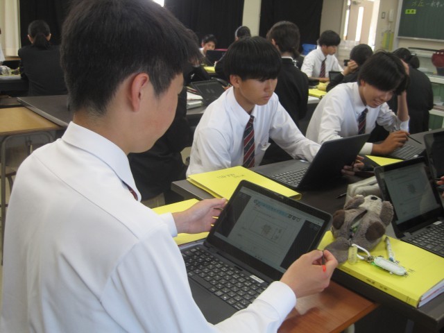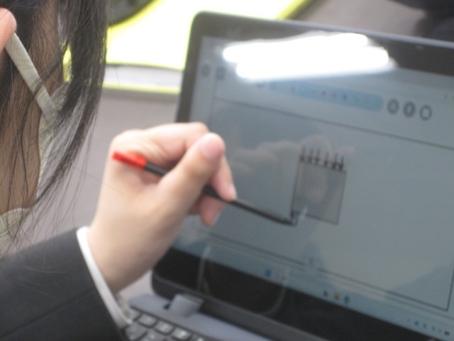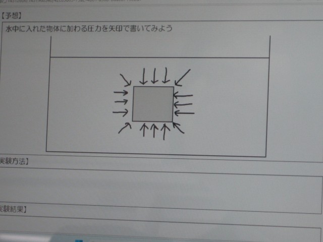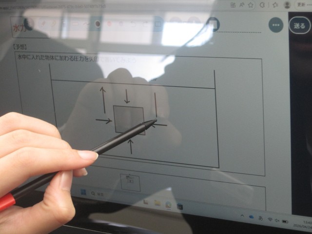 3年3組の理科の授業では浮力が生じる仕組みについて学習しました。新しいタブレットが付与され、タッチペンの使いやすさに一番喜んでいたのは、なんと菅先生でした!
