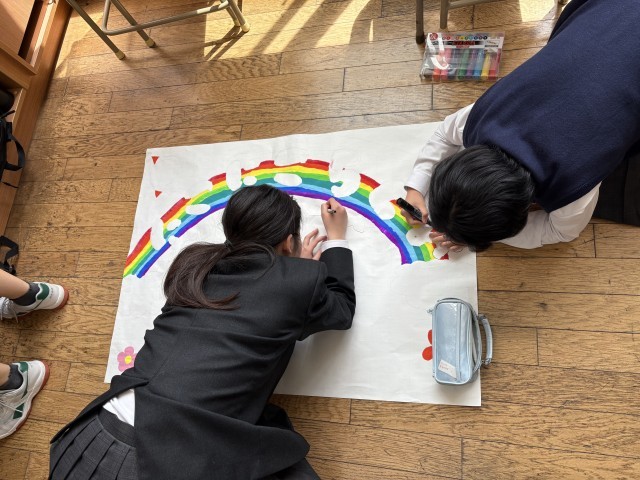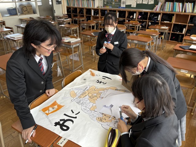 2年生は昼休みの時間を使って学級目標づくりを行いました。