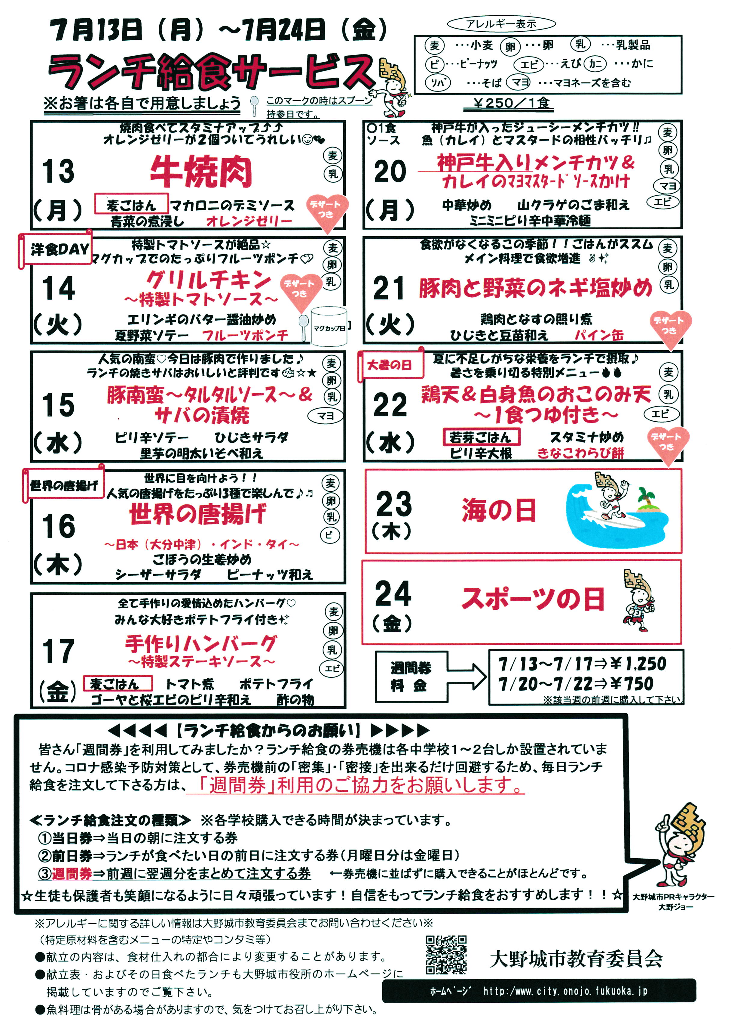【ランチメニュー】 7月13日(月)〜24日(金)