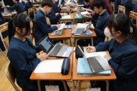 3年3組英語の授業では、前時までにガンディーの功績や平和や人権の大切さ、リーダーに必要なものを学習したあと、「私が理想とするリーダー」を選定し、その人がなぜリーダーとして素晴らしいかを英作文にして、...