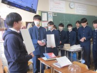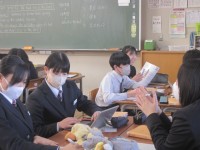 2年3組の英語の授業では、比較の学習を行いました。「必ず比較表現(比較級、最上級、原級)を2回以上使うこと」など、3つの条件が菊池先生から出され、班で文を作成しました。