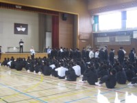 1年生は教科書が配付されました。積み重ねられた教科書の山を見て驚いた人もいたようです。これから1年間、しっかり学習に励みましょう!