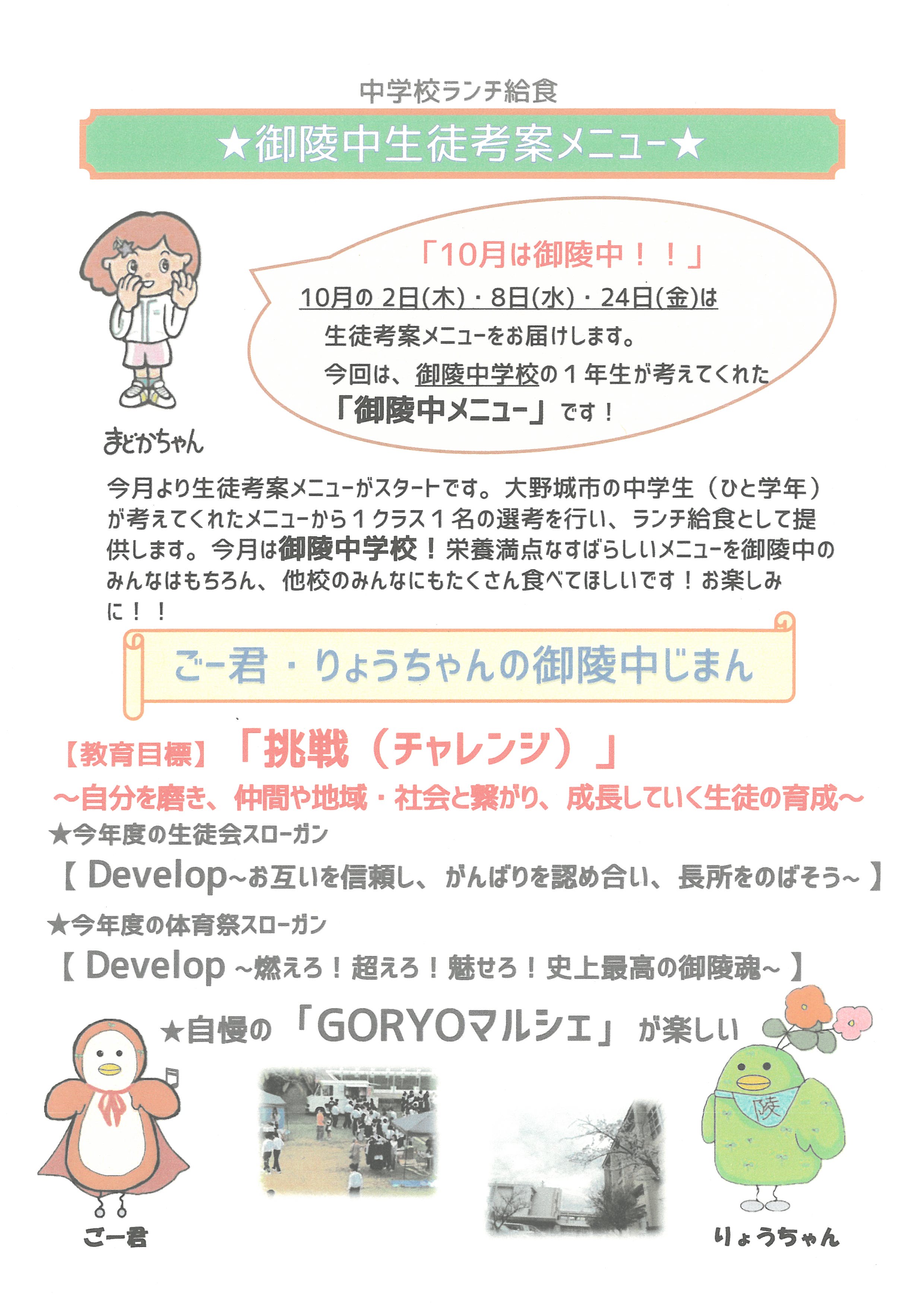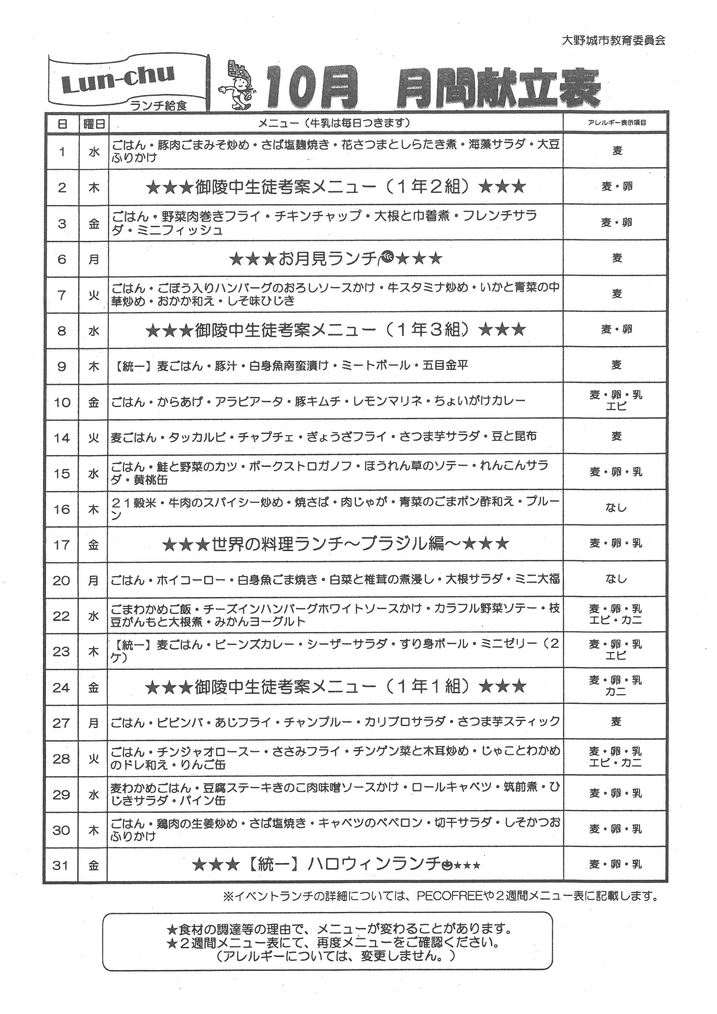 10月は御陵中メニューです(^_-)-☆ JPEG