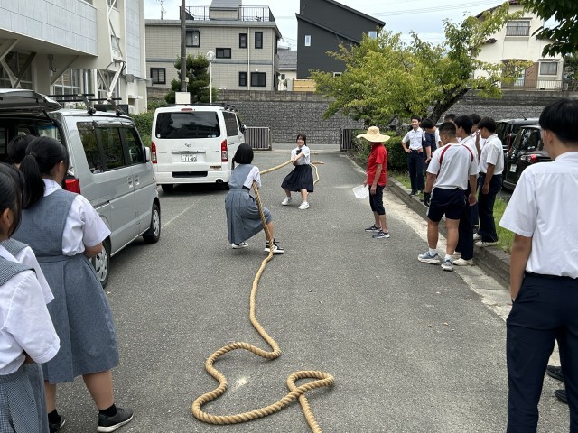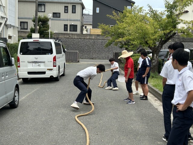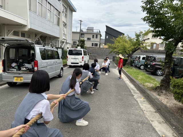 大野城市綱引き大会に向けて、3学年所属で保健体育科のK先生率いる精鋭たちが昼休みに特訓をしていた。