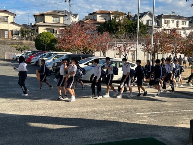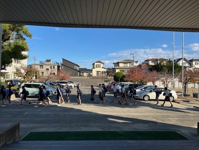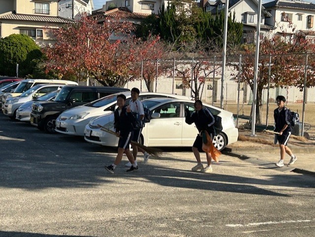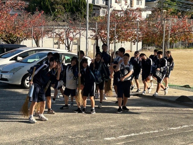 11月11日(火)、3年生による地域貢献活動が実施された。出発前に撮影していたところ、快く撮影に協力してくれた人に感謝!!(o^―^o)ニコ