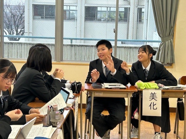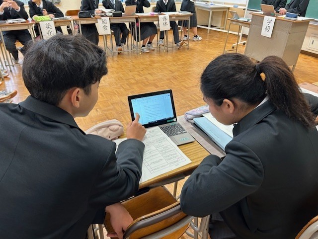 研修会では、活発な意見や質問が出されこれからの大利中学校の未来を明るくするスローガンや取組について話し合われた。