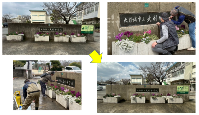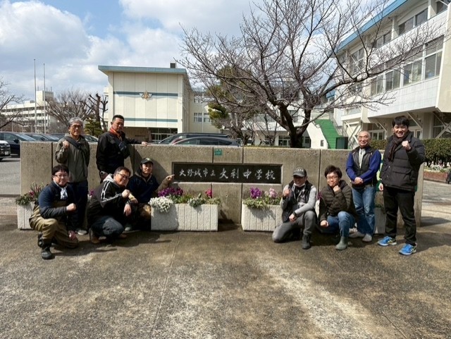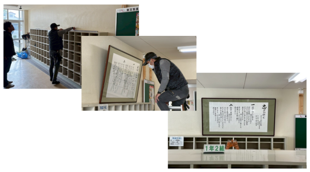 3月7日(土)、朝から我が校をいつも陰で支えていただいている「げんこつの会」有志のメンバーの皆様が50周年記念歌額装の設置と校訓石碑及び、正門周辺の修復を行ってくださった。