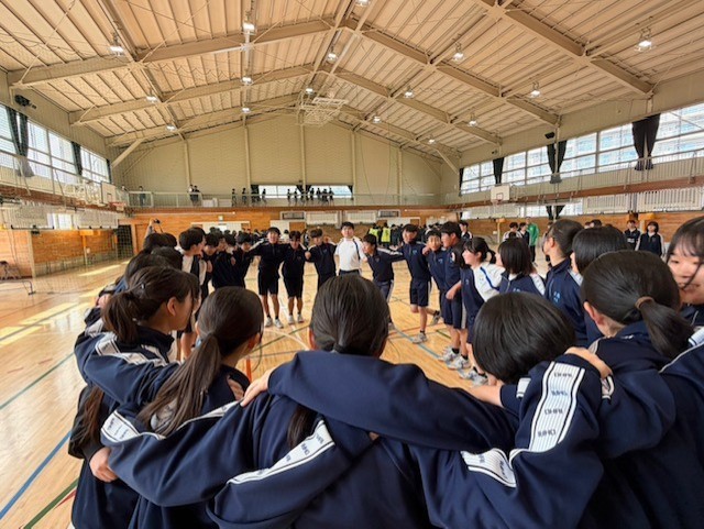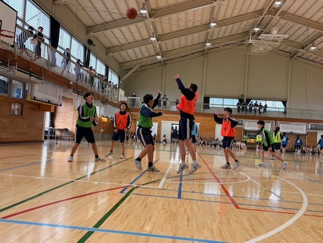 当日はあいにくの雨天時制となりましたが、体育館で男女ともにバスケットボールを行い、クラス対抗で熱戦が繰り広げられました。