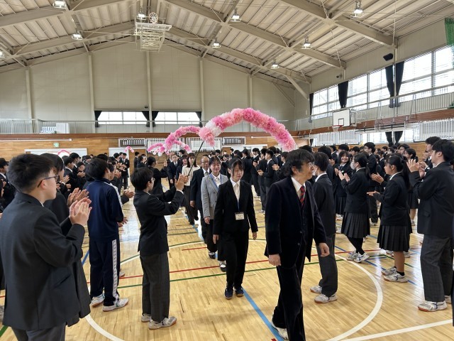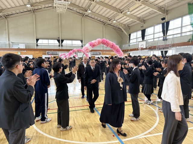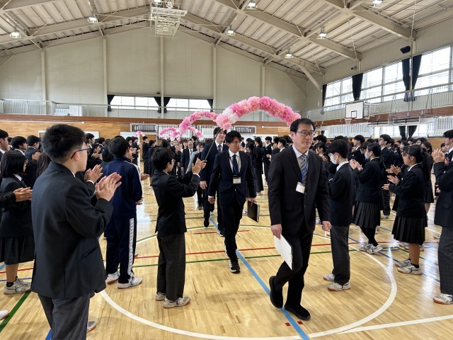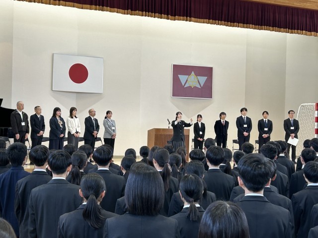 赴任式では赴任された先生方に温かい歓迎の言葉や校歌が送られた。