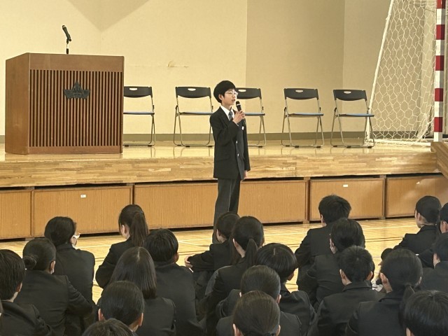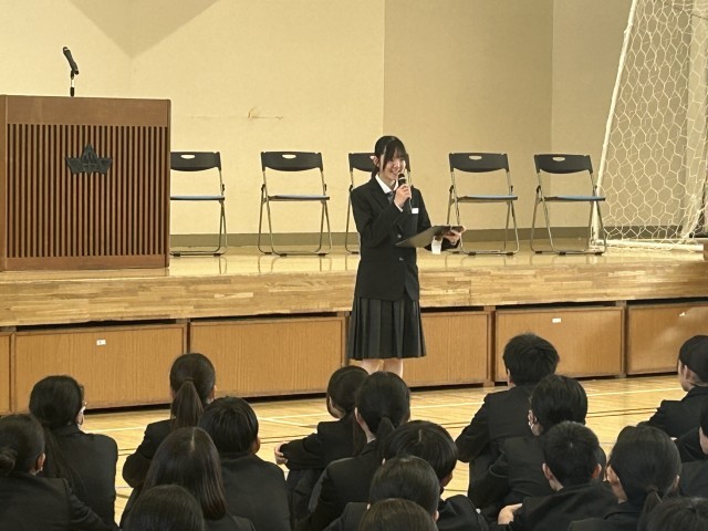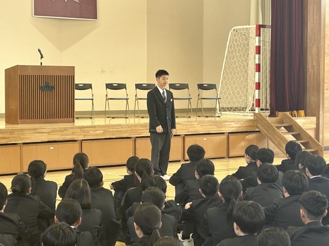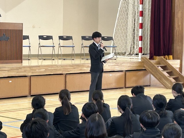 始業式では、生徒会役員の生徒たちから今年度の目標などが伝えられ、みんなで頑張ろっていこうと全校生徒が一つになる引き締まった式となった。
