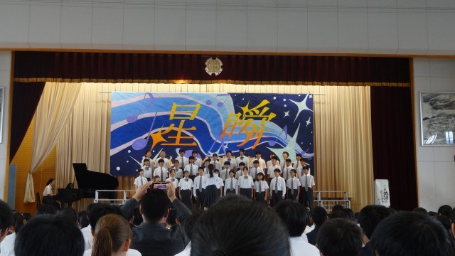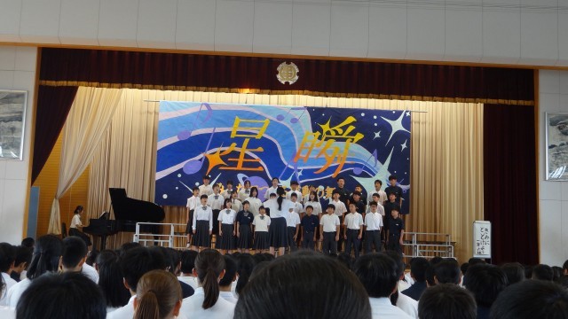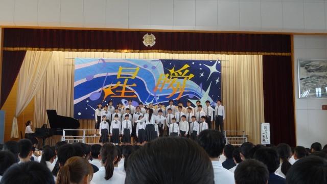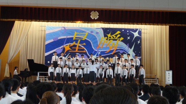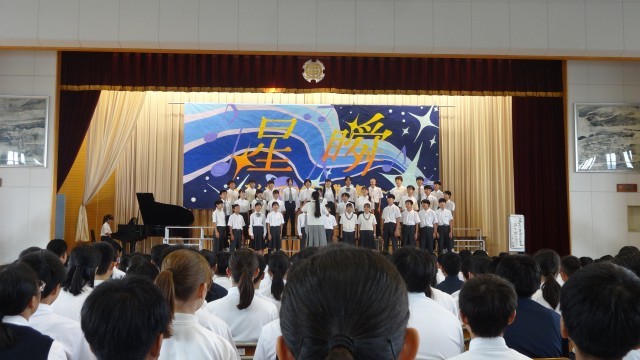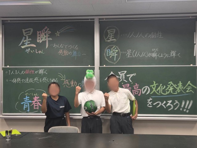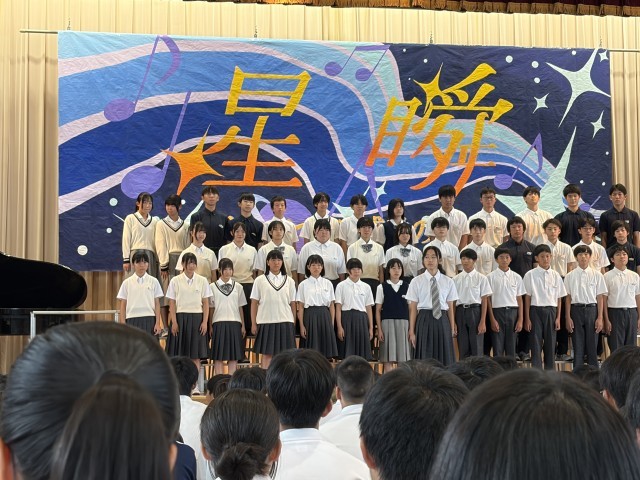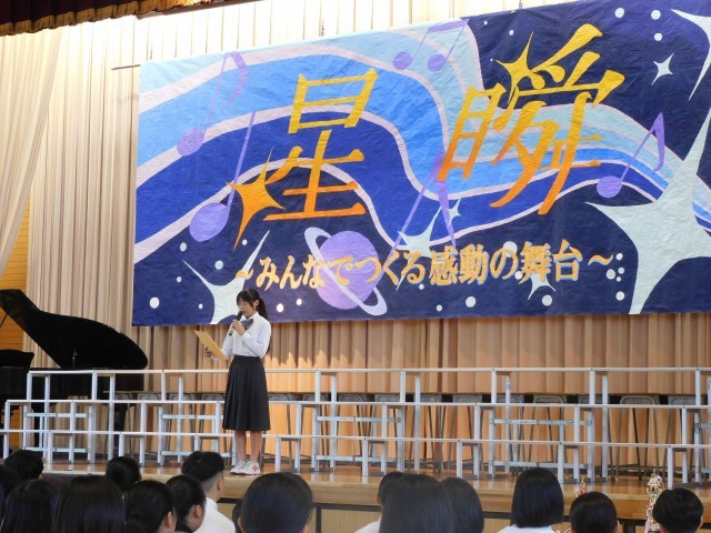 令和7年10月1日(水)文化発表会スローガンが発表されました。「星瞬」です。一瞬の輝きを大切に、一度しかない今の学年、クラスでの青春を送ってください。
