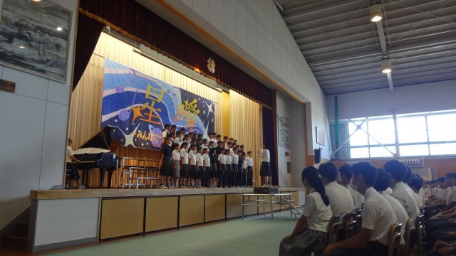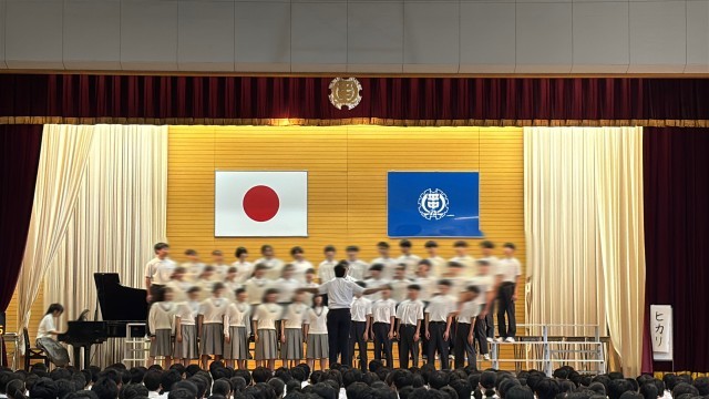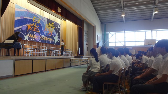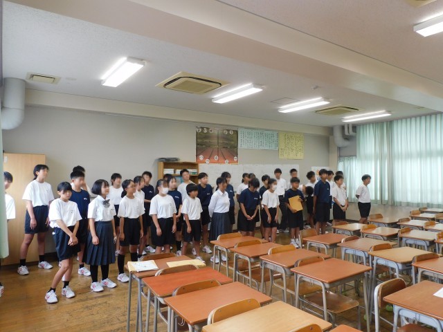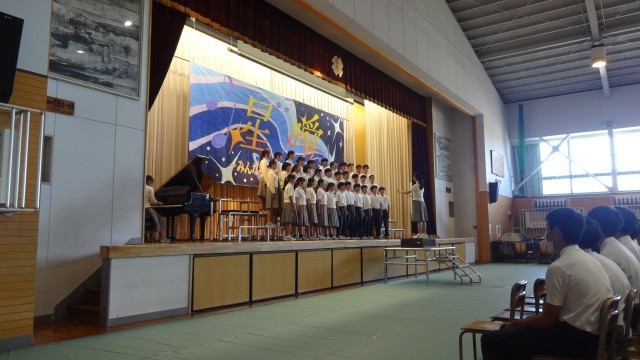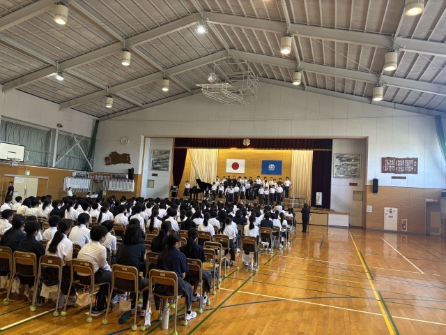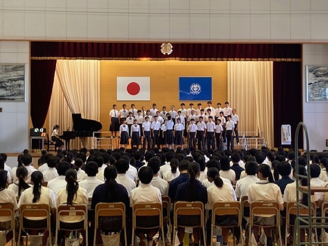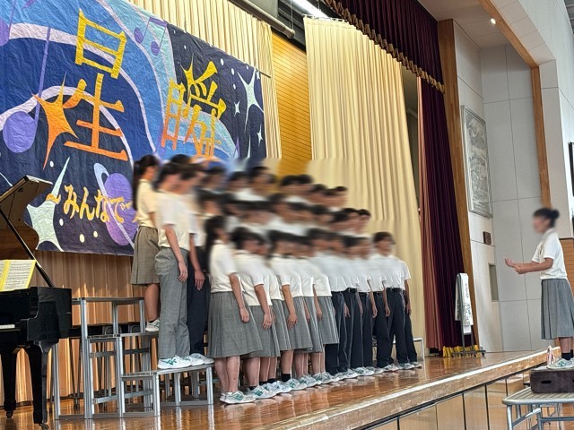 令和7年10月6日(月)今日から朝の校歌練習が開始されました。まだまだ声は出ていませんが眠気は吹き飛んでいました。最終日が楽しみです。